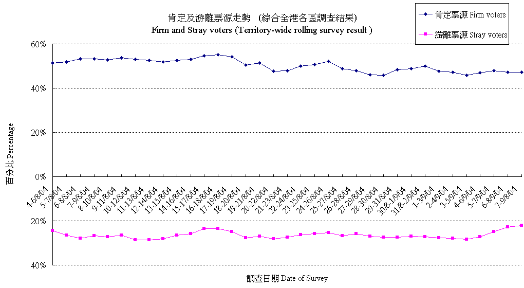 | 未決定/唔知/難講 | 32.2% | 33.6% | 33.7% | 34.4% | 38.3% | 40.7% | 40.4% | 41.1% | 40.8% | 40.5% | 39.7% | 38.9% | 38.7% | 36.8% | 36.7% | 37.2% | 37.5% | 38.1% | 39.9% | 43.3% | 43.8% | 46.2% | 47.8% | 48.2% | 46.3% | 45.1% | 43.9% | 43.7% | 46.6% | 45.3% | 45.8% | 46.1% | 43.9% |